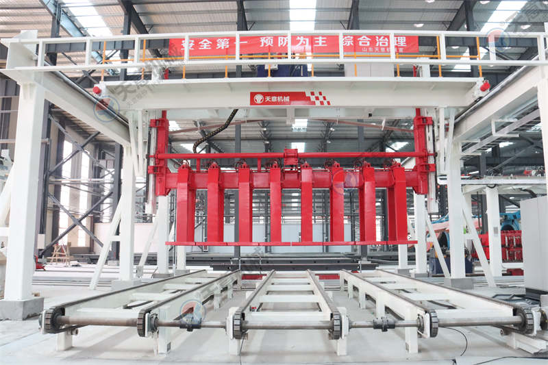 四、翻轉(zhuǎn)切割機(jī)組。其主要作用是:蒸壓加氣砌塊在澆注發(fā)氣后,形成大體積坯體,要使坯體達(dá)到所要求的產(chǎn)品尺寸,就必須用切割機(jī)切割。