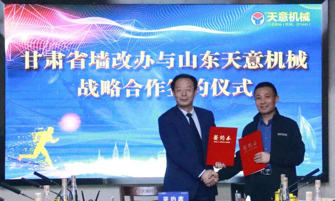 同時,甘肅省墻改辦、甘肅省企業(yè)分別與天意機械簽訂了戰(zhàn)略合作協(xié)議,將進一步提升合作層次,有效拓展合作深度和廣度。