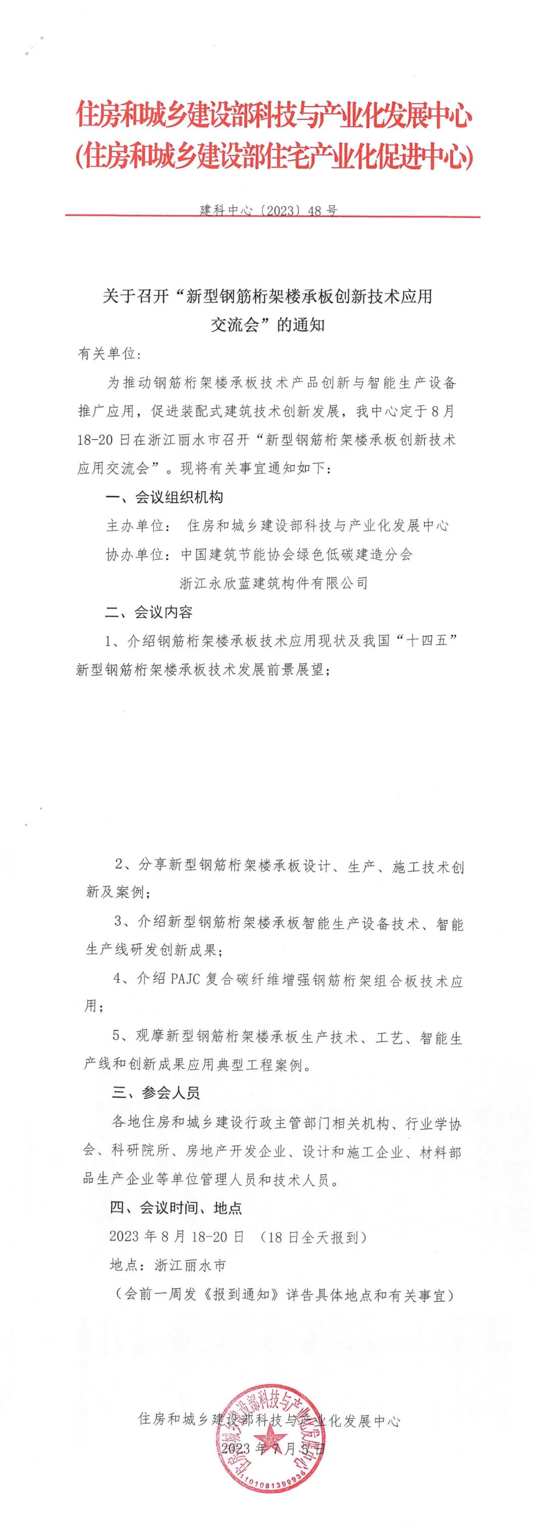 關(guān)于召開“新型鋼筋桁架樓承板創(chuàng)新技術(shù)應(yīng)用交流會”的通知