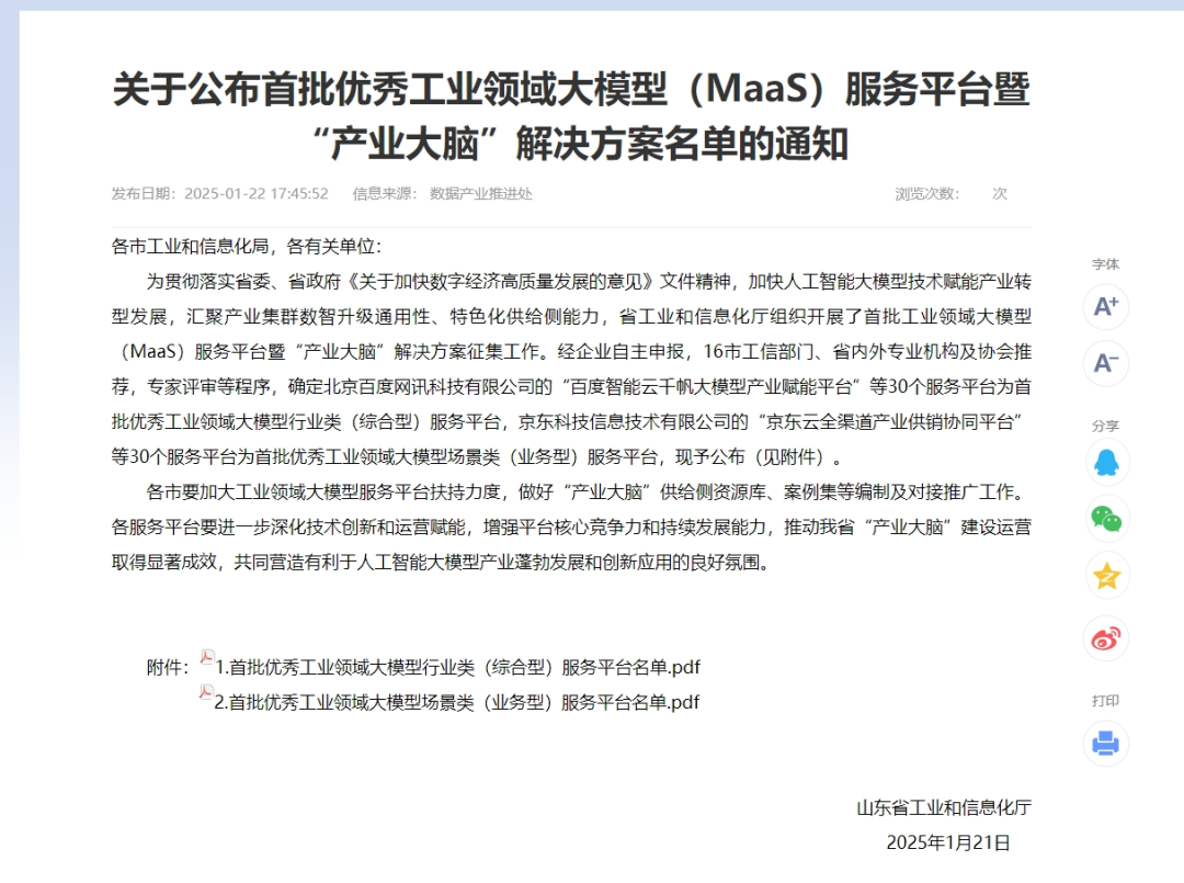 2025年的第一封喜報丨天意機械榮獲山東省首批優(yōu)秀工業(yè)領域大模型服務平臺